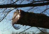 March 22, 2011 - Yesterday i had cut a few branches off from a birch tree. The branches were in the way. Today we noticed drops of fluid coming out from the cut end of the branches. The birch tree was giving birch sap.