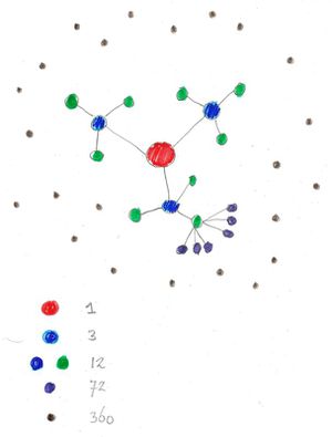 When you yourself are taking responsibility for 360 homes and you built up a group of 12 loyal people around you, supporting and protecting you, then these 12 people themselves are still at a level of trying to gain their three good archangels. In restoration this means that there comes about a situation like with Cain and Abel. Cain and Abel together represented Adam. The 12 first people following you are like Adam who also need three archangels, but they haven't yet found them. There is still going on a process of restoration for these 12 ub relation to three archangels, which means that for them there are three archangels in the worldly (Cain) position and three archangels in the heavenly (Abel) position. That means that there are needed 6 people for each of the first 12 people connected to you, or 12 x 6 = 72. Together with the first 12 people this makes a total number of 84 people.