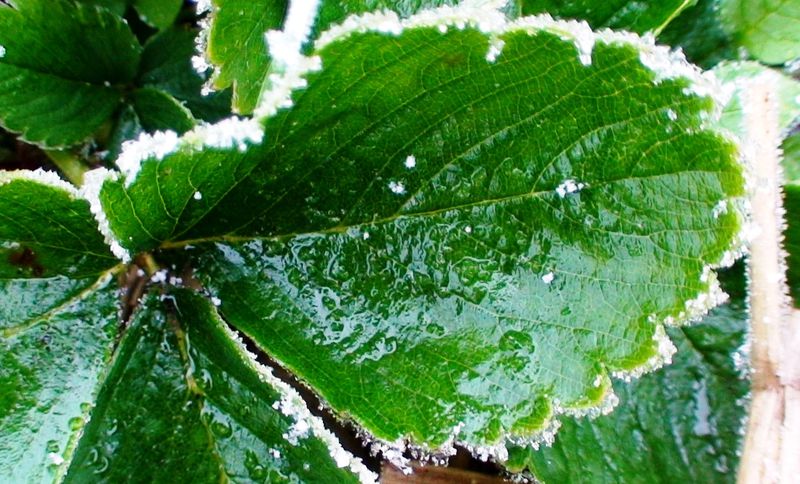 Frozen strawberry leaf