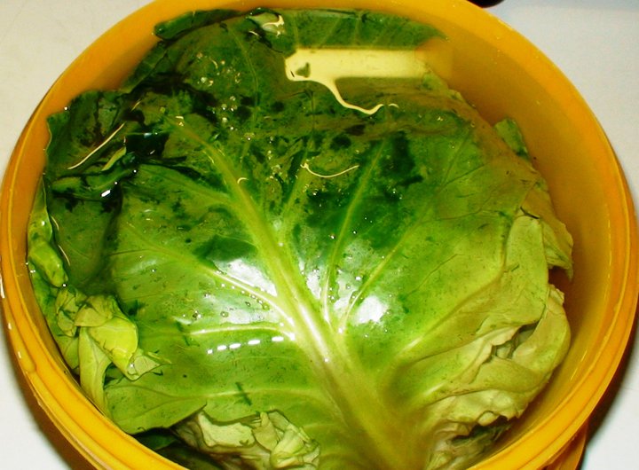 Preparing sauerkraut from white cabbage. The entire(soft type of) white cabbage is kept under water with sea salt for about two months. Salt should be ca 2.5 % of the entire weight. You can add garlic and pepper as the Turks sometimes do and it is similar to kimchi.