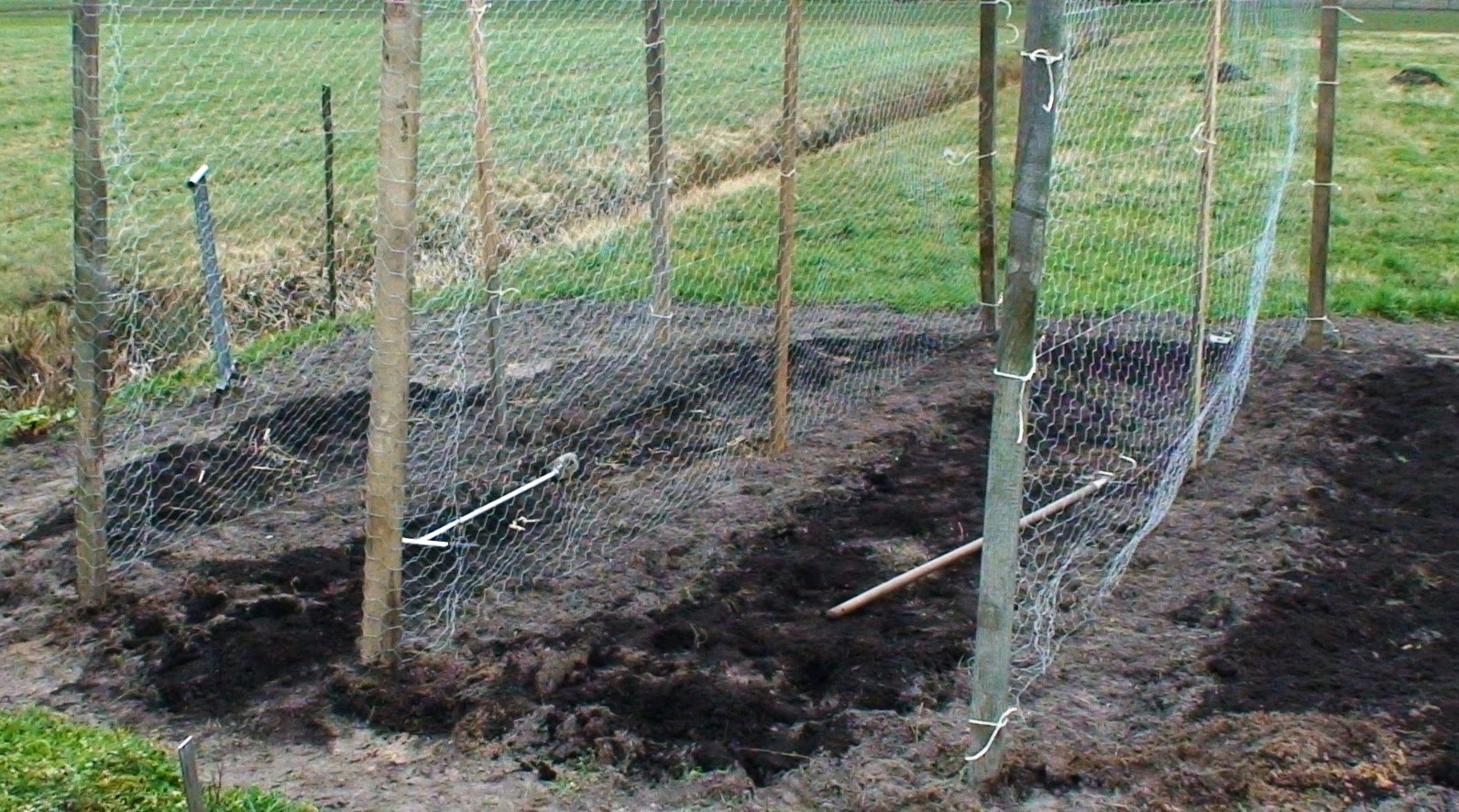 Because these plants grow 2 meter high, i put up fences of iron wire netting of the same height.