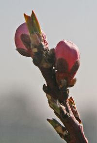 Peach flowers budding in early spring