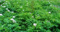 Why weeding is important... The photo shows a field with potatoes. They're all from the same species but the front and outer potatoes in the field (they're placed in circles) were weeded and in the center ones not.